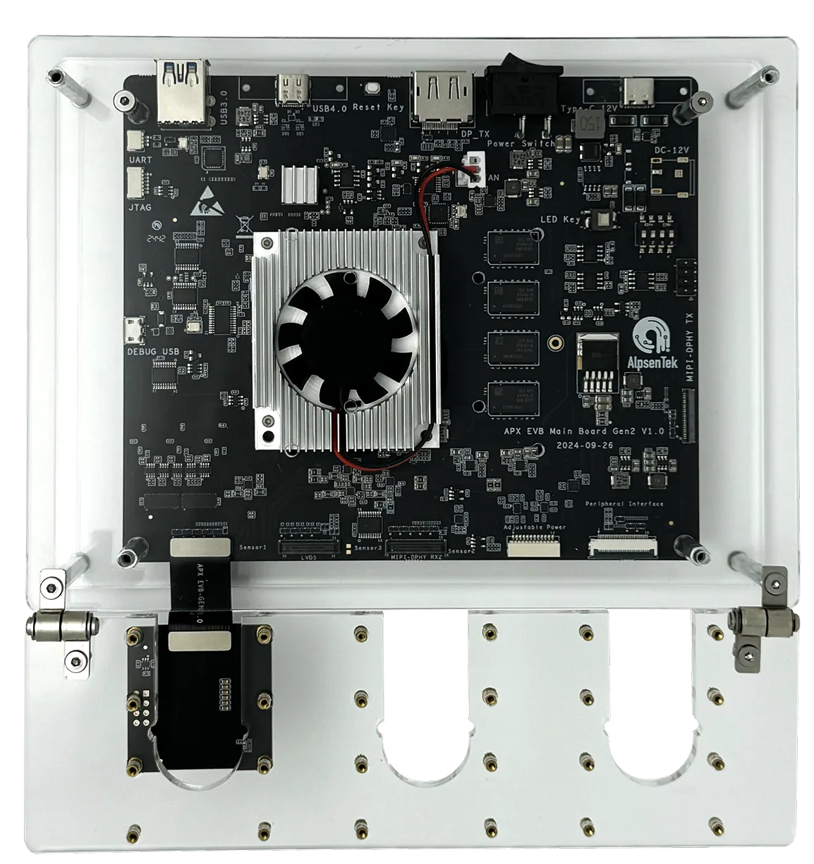 融合视觉专用开发板APXEVKGen2集成了强大的FPGA、数据存储单元和电源管理单元,提供了包含控制、采集、传输、存储、通信等类型的丰富数据接口,并配备固件、软件和算法功能,加快以用户为导向的开发。同时,它也为快速部署提供了所需的灵活性和可扩展的解决方案,配合强大的处理能力,以验证各种产品开发策略。